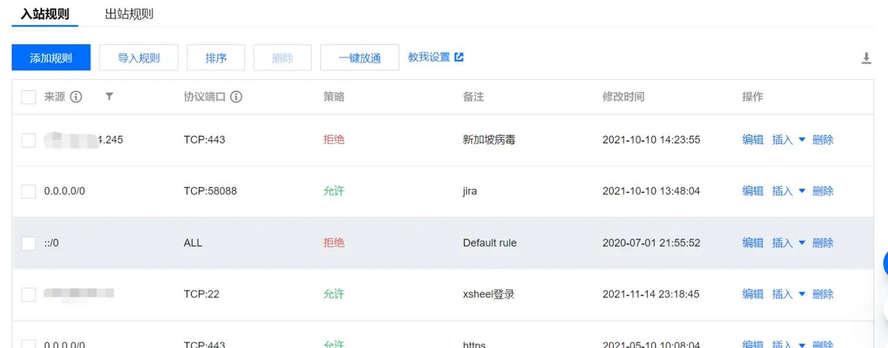 列如腾讯云的安全组,除了我需要的端口,其他的都关闭,