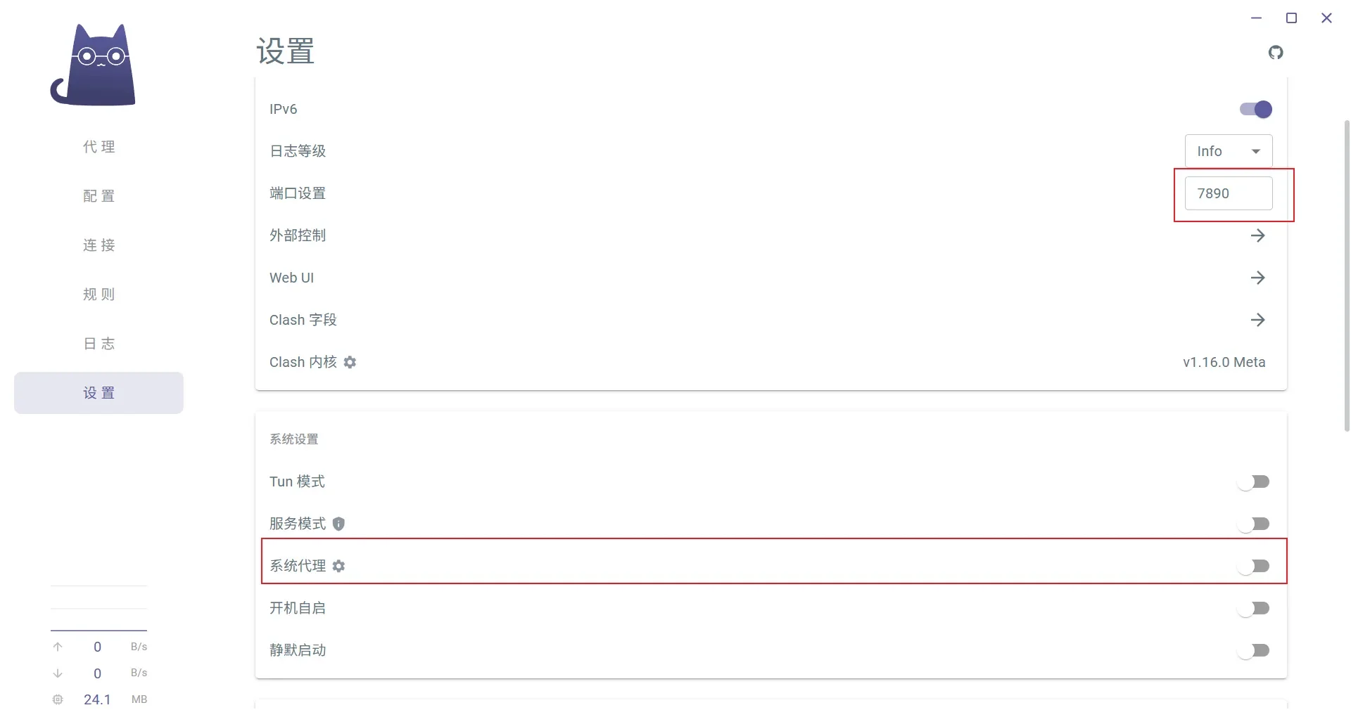 1️⃣首先打开clash的设置页面,记住端口号(默认7890),并关闭系统代理(p2)